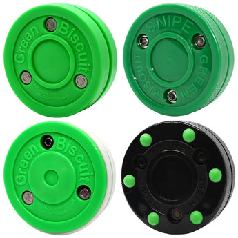 The Original biscuit slides effortlessly on virtually any rough surface so you can play on driveways, parking lots, streets, basements, tennis courts, etc. Shoot the SNIPE biscuit on goals to sharpen your shooting accuracy. Practice those saucer passes with the Green Biscuit PRO puck. Experience the world's greatest roller hockey puck; made for inline hockey games on sport court tile surfaces. Shoot it on goal and practice stick handling on smooth surfaces.