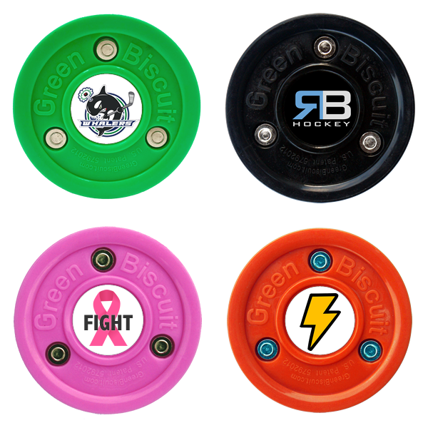 Simply place your order, then send us your custom logo and order number to tompederson41@gmail.com. With this package deal, you’ll receive 5 or 25 Green Biscuit pucks in the color/type you order, completely customized with your team logo, company logo or favorite photo adhered to the center of each puck.